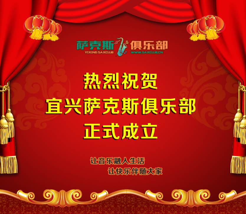 热烈祝贺宜兴萨克斯俱乐部正式成立,在宜兴的萨友们有福利啦,可以经常在一起交流咯!